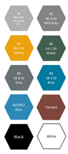 The colours shown on the images are for guidance only. The displayed colour will depend on your monitor and browsers. The finished colour therefore may not be as shown here.
